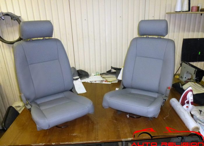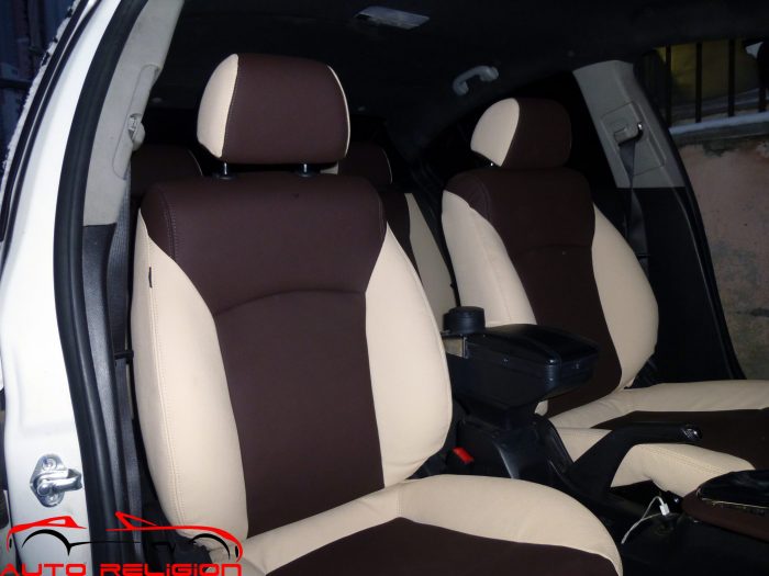 Перетяжка сидений эко кожей двух цветов. Относительно бюджетный вариант преобразования салона. Качество и долговечность намного лучше покупных авточехлов.